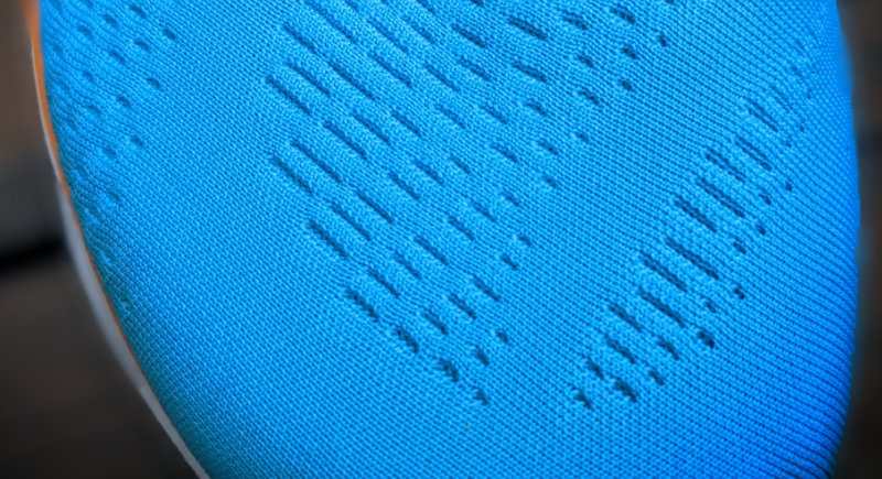The upper features an engineered soft knit material that envelops the foot and offers a stretchable sensation. The overall fit of the upper is neither narrow nor wide. It is stretchy and adapts to the shape of the foot.