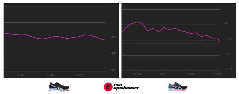 While the stack height is big, the wider base keeps the shoe stable enough for shorter runs. Stability is better compared to other neutral racing flats. Here is a comparative graph between Reebok Run Fast 2 and Asics Hyper Speed. Pronation angle averaged at 12 degrees for Run Fast 2, while Hyper Speed is quite stable at about 10.5 degrees. (courtesy: runmechanics.in)