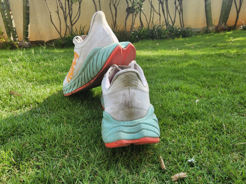 Hoka Carbon X2 is available for the Indian market on the Tata Cliq website. When I first saw images of the Carbon X2 online, I immediately took a liking to its new design with the extended, exaggerated heel at the back. At first look, the shoe screams it is an endurance racer. Its bold overlays, cutouts, rocker shape, and flared heels say it is a racer, while the midsole cushioning says it is all about endurance.
