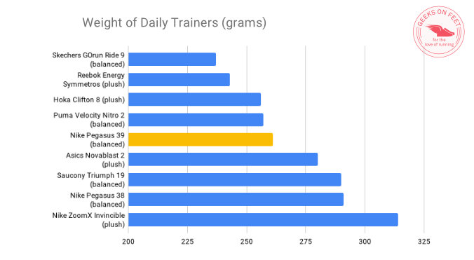 Overall, it’s the midsole where the Pegasus 39 has seen a significant update, and this is exactly where the shoe has lost its weight.